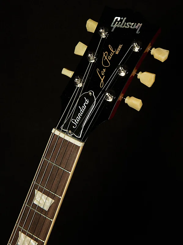 Эта конкретная модель Les Paul Standard Custom Shop Top вдохновлена 50-ми, что означает наличие некоторых действительно интересных деталей. У нее гриф в стиле пятидесятых, который ощущается приятно массивным, но не слишком толстым, и играть на нем - одно удовольствие. Также она оснащена винтажными колками с кнопками в форме киностандартного символа и ручками в форме цилиндра для завершения винтажного облика.