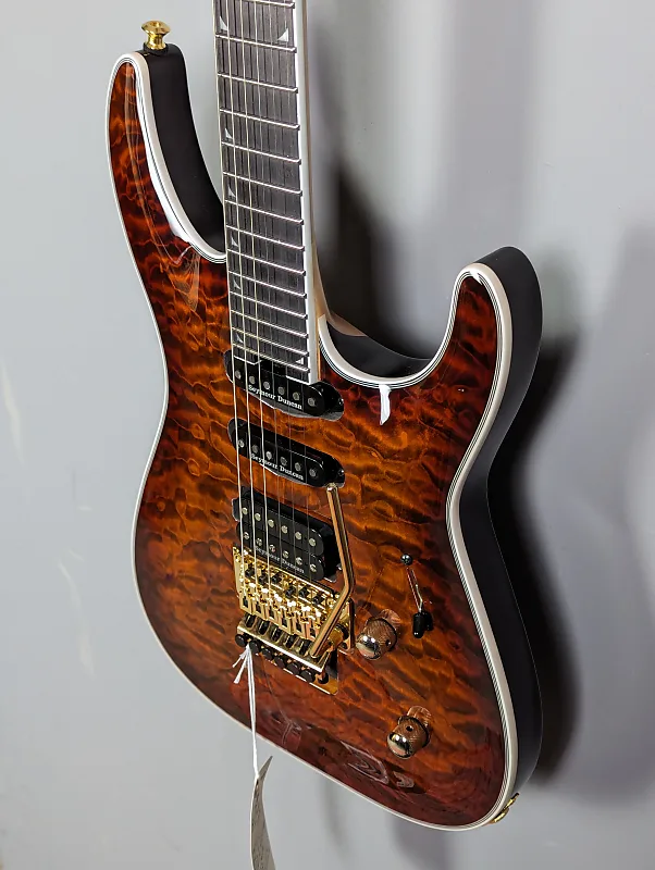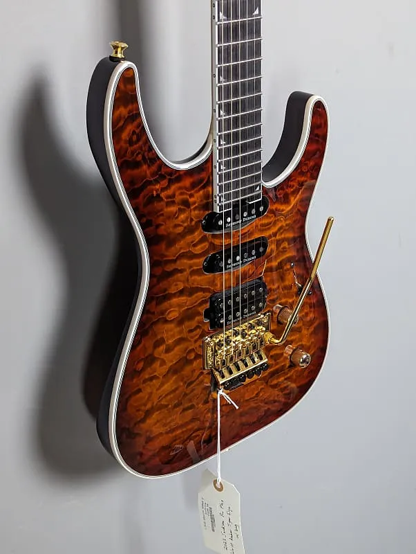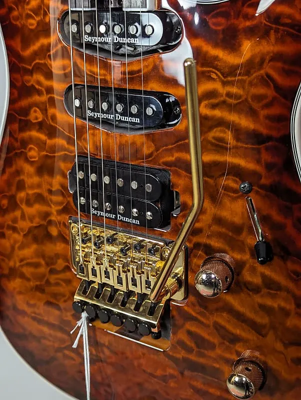 Описание может быть иногда затруднительным такая престижная гитара, слова вроде потрясающая, элегантная, мощная просто не передают всей сути. Это действительно произведение искусства! Трехсекционная шея позволяет музыкантам легко перемещаться по грифу и в момент завершения потрясающего соло сбросить ладони на могучий Floyd Rose для мощного и по-настоящему аутентичного дивабомба, создающего сокрушительное звучание. Сочетая ее великолепную конструкцию с набором высокоэффективных звукоснимателей Seymour Duncan, вы готовы к рок-н-роллу!!! От плотных и мощных низов до сверкающих высоких нот, эта супер-шредер готова зажечь сцену!