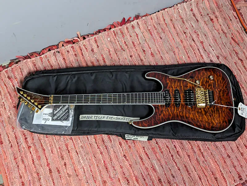 Jackson Pro Plus Soloist - это идеальный пример высокопроизводительной супер-шредерной гитары, которая наполнена множеством первоклассных характеристик! От динамичной отделки Amber Tiger Eye до ревущих звукоснимателей Seymour Duncan. Эта мощная металлическая машина готова к выступлениям, записи в студии и идеально подходит для шреддинга, при этом предлагается по разумной цене!