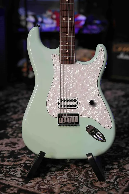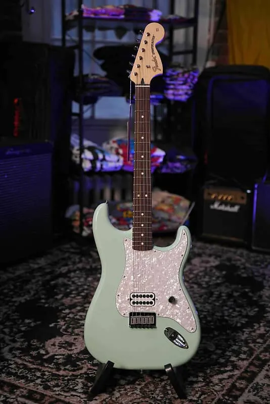 Fender Tom DeLonge Stratocaster Rosewood - SFG (Surf Green) - это уникальная модель, которая передает суть панк-роковой философии ДеЛонга и его умение создавать запоминающиеся мелодии. Известная своим мощным звуком и легкостью игры, эта гитара создана для музыкантов, которые ищут простой, но эффективный инструмент для агрессивных музыкальных стилей. С ярким покрытием Surf Green, этот Stratocaster выделяется на сцене и в студии.