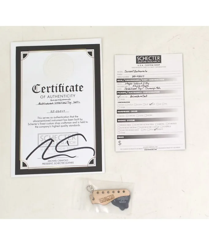 Каждая Schecter USA Sunset Extreme 6 поставляется с премиальным жестким футляром USA Custom Shop для защиты вашей Инвестиции в стиль.