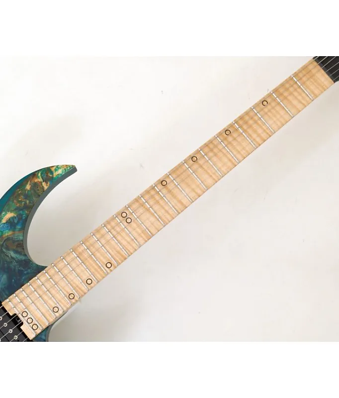 Гриф из клена с эффектом пламени оснащен 24 джамбо-ладов Jescar из нержавеющей стали, реверсивными алюминиевыми инкрустациями и боковыми точками Luminlay - идеально как для сцены, так и для студии. Грифовая кость Graph Tech Black Tusq и ключевые колки Hipshot с фиксатором обеспечивают стабильность настройки, а мост Hipshot Ibby HM гарантирует точную интонацию и плавность игры.