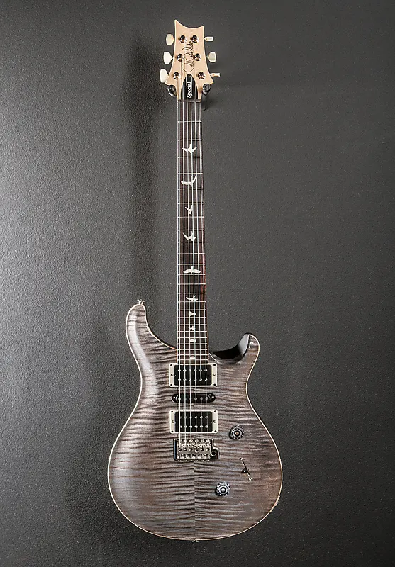 Выцветший серый черный, глянцевая нитро отделка корпуса, резной фигурный топ из клена скрипки, корпус из красного дерева, тонкий резной гриф из атласного нитро, палисандровый гриф радиусом 10 дюймов с олдскульными вставками Bird, длина мензуры 25 дюймов, 1 порожок 11/16 дюйма, бридж PRS 85/15 и нековые звукосниматели плюс средний звукосниматель NS-01, 5-позиционное переключение лезвий с регулировкой громкости и регуляторами тембра push/pull катушки, Запатентованное PRS тремоло, блокировка тюнеров PRS Phase III с кнопками крыла, 7,6 фунта, с чехлом
