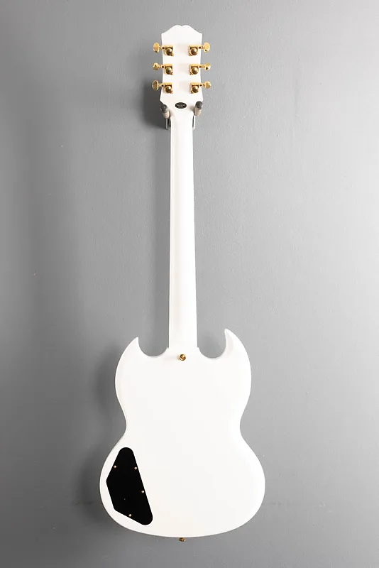 Epiphone SG Custom имеет контурный корпус из махагони с двойным вырезом, обеспечивающий исключительный доступ ко всем 22 ладам. Вклеенный гриф из махагони добавляет знаменитое сустейн модели. Гриф имеет профиль 1960 SlimTaper C, который не такой тонкий, как некоторые профили SlimTaper, но все же быстрый и удобный для игры. Гриф увенчан накладкой из границы из эбенового дерева с 22 ладами среднего размера и украшен вставками Custom из перлодоида. Радиус грифовой доски 12” одинаково удобен и хорошо подходит для аккордов на первой позиции и для удобства выполнения бендов выше по грифу без риска того, что ноты будут дребезжать. Epiphone SG Custom оснащена золотой фурнитурой повсюду, вплоть до золотых вставок на черных ручках управления Top Hat. Гриф с окантованной головкой гитары имеет колки Grover Mini Rotomatic и украшается логотипом Epiphone и инкрустацией Custom Split Diamond из перламутра. Колки Grover, графитовый порожек Graph Tech, а также полностью регулируемый мост Epiphone LockTone Tune-O-Matic и фиксирующая струнодержатель Stop Bar работают вместе, обеспечивая стабильную настройку и точную интонировку.