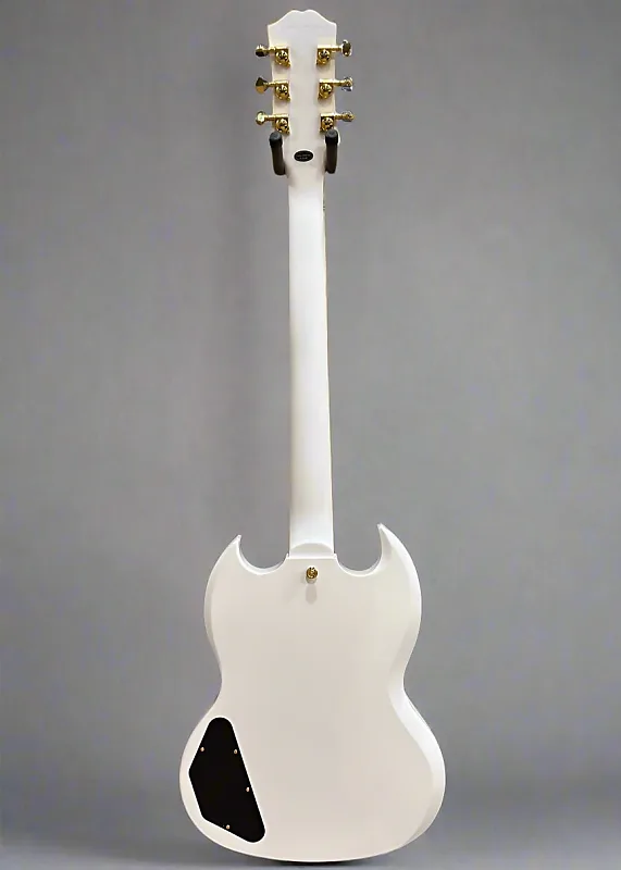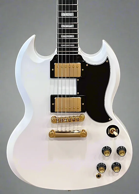 Epiphone SG Custom имеет контурный корпус из махагони с двойным вырезом, обеспечивающий исключительный доступ ко всем 22 ладам. Вклеенный гриф из махагони добавляет знаменитое сустейн модели. Гриф имеет профиль 1960 SlimTaper C, который не такой тонкий, как некоторые профили SlimTaper, но все же быстрый и удобный для игры. Гриф увенчан накладкой из границы из эбенового дерева с 22 ладами среднего размера и украшен вставками Custom из перлодоида. Радиус грифовой доски 12” одинаково удобен и хорошо подходит для аккордов на первой позиции и для удобства выполнения бендов выше по грифу без риска того, что ноты будут дребезжать. Epiphone SG Custom оснащена золотой фурнитурой повсюду, вплоть до золотых вставок на черных ручках управления Top Hat. Гриф с окантованной головкой гитары имеет колки Grover Mini Rotomatic и украшается логотипом Epiphone и инкрустацией Custom Split Diamond из перламутра. Колки Grover, графитовый порожек Graph Tech, а также полностью регулируемый мост Epiphone LockTone Tune-O-Matic и фиксирующая струнодержатель Stop Bar работают вместе, обеспечивая стабильную настройку и точную интонировку.