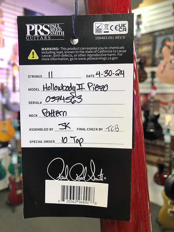 PRS Hollowbody II Piezo 10 Top & Back, Charcoal Cherry Burst с корпусом