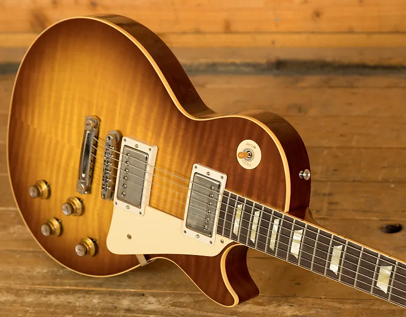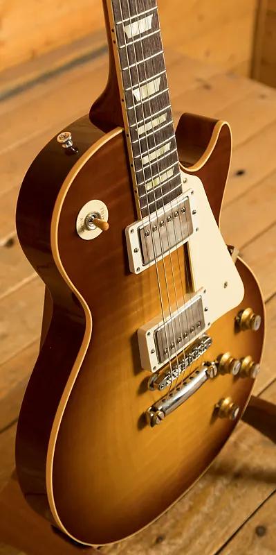 С одной цельной легкой корпусной частью из красного дерева (Mahogany), эта Les Paul оснащена фигурной верхней дека из клена, создавая идеальное сочетание для звучания. Богатое и сверхрезонансное звучание обеспечивает премиальное качество тона и вечную эстетику, а Nitro-отделка Iced Tea Burst VOS выглядит на миллион долларов и действительно позволяет древесине «дышать» и естественному тону проявляться.