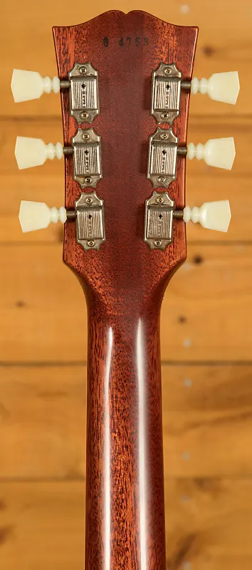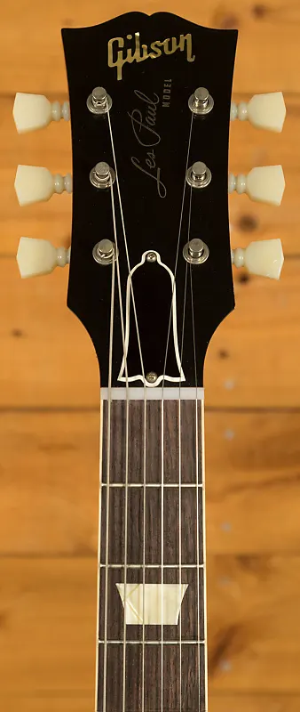 Длинная шейка из красного дерева с tenon-стыковкой украшена четкой накладкой из индийского палисандра (Indian Rosewood) с классическими накладками Gibson Aged Cellulose Nitrate в виде трапеций - эта гитара выглядит абсолютно аутентичной. С длиной мензуры 24,75 дюйма и средними джамбо-ладовками она сохраняет классическое ощущение Les Paul. Мост ABR-1 и легкий алюминиевый задний бридж обеспечивают стабильность и комфорт игры. предлагает подлинную винтажную атмосферу. С профилем грифа SlimTaper 60-х годов эта гитара невероятно удобна для игры снизу вверх.