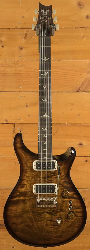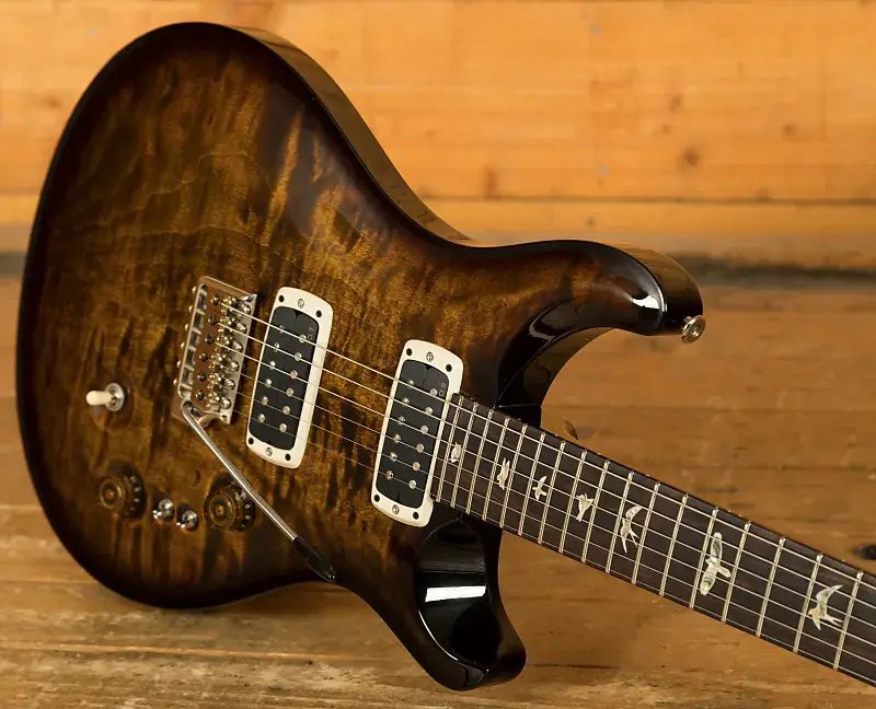 Эта гитара PRS Custom 24-08 в расцветке Black Goldburst Pattern Thin оснащена резным кленовым топом, махагоновым корпусом и махагоновым грифом с профилем Pattern Thin, а также грифовой накладкой из палисандра. Длина мензуры составляет 25 дюймов, гриф имеет 24 лада. Гитара комплектуется звукоснимателями TCI и переключателями EQ Mini-Toggle, представляющими последнюю модернизацию этой модели, позволяющими регулировать эквалайзер для улучшенного контроля тона.