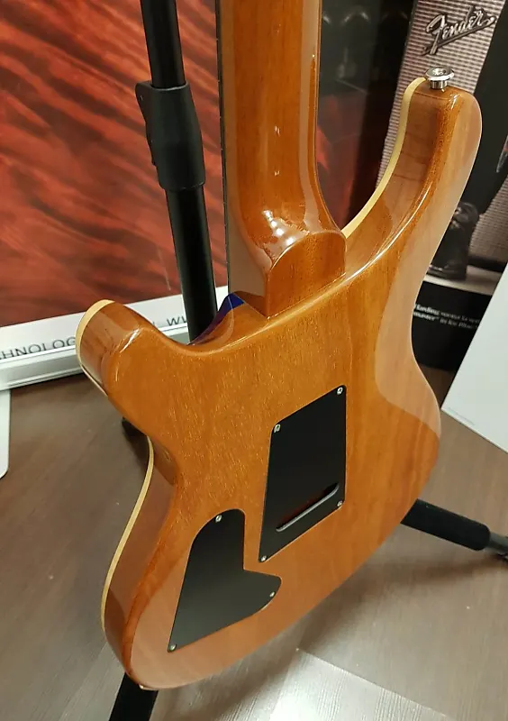 Верхняя дека: резной клен с рисунком, Задняя дека: махагони