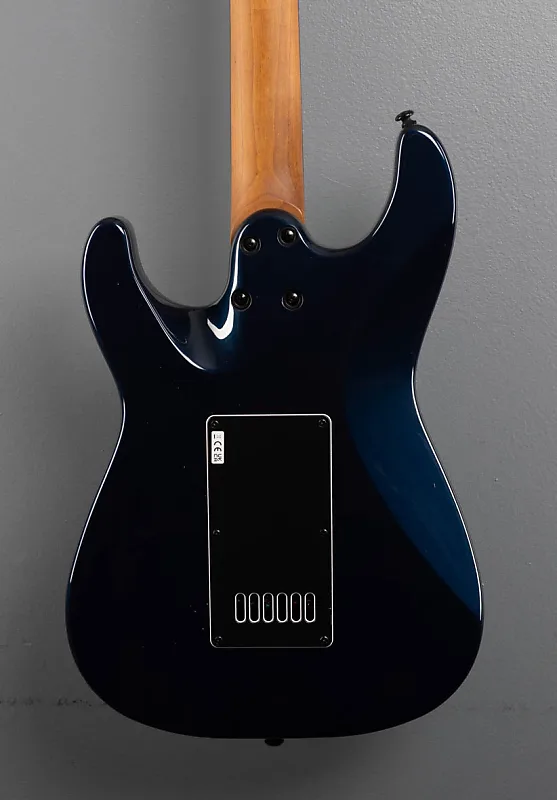 Полуночный синий, корпус из ольхи, гриф из карельского клена с тонкой D-образной формой и графитовыми армирующими стержнями, накладка из эбена с радиусом 12"-16" и точечными вставками, лады Jumbo из нержавеющей стали, длина мензуры 25,5", ширина струнодержателя Graph Tech TUSQ 1,6875", звукосниматели Seymour Duncan Nazgul (бриг и сенсинг), 5-позиционный переключатель с регуляторами громкости и тембра, мост EverTune F6, фирменные блокирующие колки Charvel, вес 8,2 фунта, поставляется с чехлом.