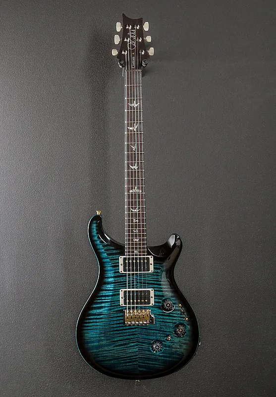 Cobalt Smokeburst, высокоглянцевое финишное покрытие нитроцеллюлоза, верх из кленовой древесины с резьбой в виде флейма Violin, корпус из массива красного дерева, шейка из резного массива красного дерева Pattern Thin, радиус грифа розового дерева 10 дюймов с инкрустацией Bird, мензура 25 дюймов, ширина струнодержателя 1 11/16 дюйма, звукосниматели мостовой и шейной 85/15 плюс система PRS/L.R. Baggs piezo, 5-позиционный переключатель с регуляторами громкости и тона плюс 3-позиционный селектор и регулятор смешивания для пъезо-системы, патентованный PRS Gen III пъезо-тремоло, блокирующие колки PRS Phase III с крыловидными кнопками, вес 8,2 фунта, с жестким футляром