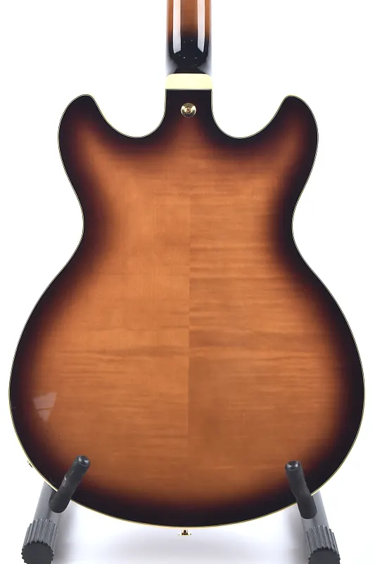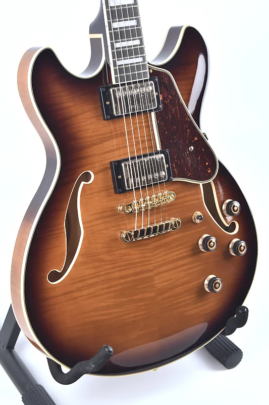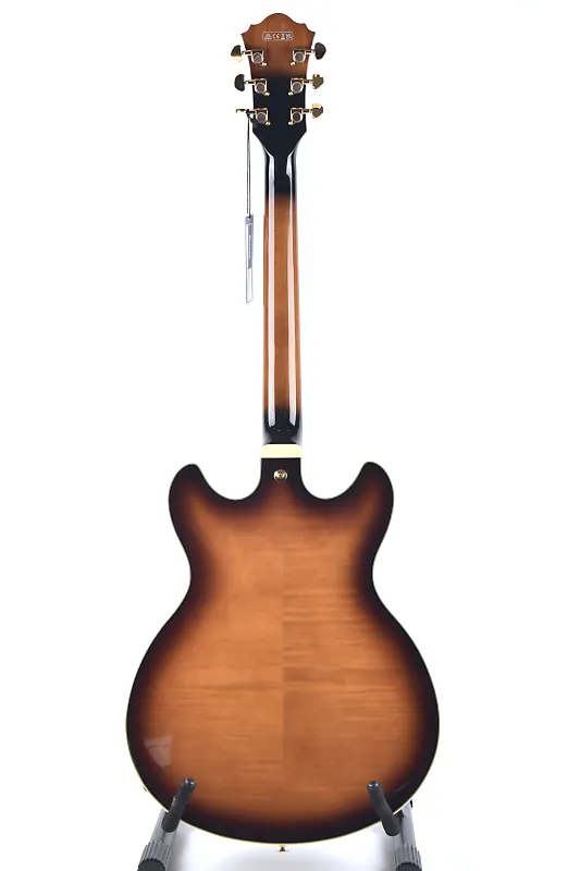 Ibanez Artcore Expressionist сочетает в себе резной верх из кленового спила, заднюю часть и боковины с оформленной накладкой из черного эбенового дерева Macassar, что обеспечивает теплое, насыщенное звучание, подходящее для различных музыкальных жанров.