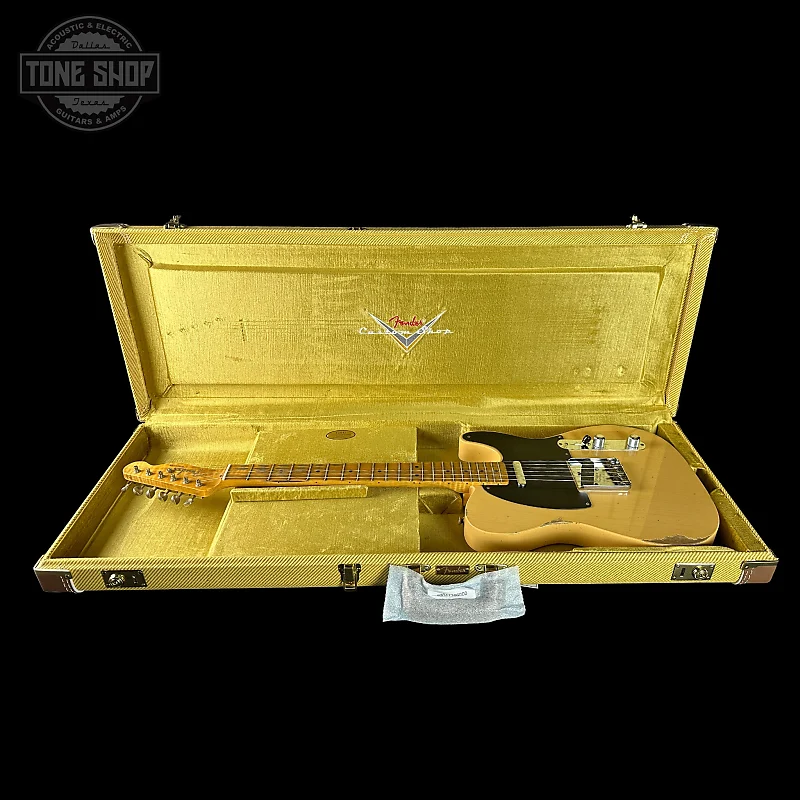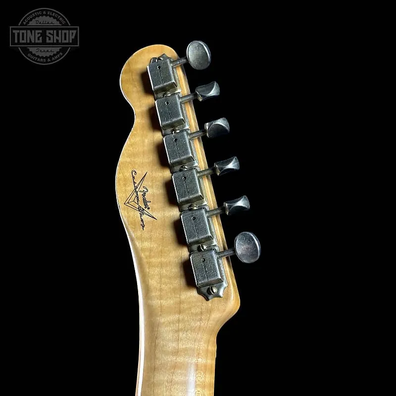 Винтажные детали присутствуют повсюду, включая однослойный черный фено́лициевый медиаторный щиток, винтажный мост Tele с латунными седлами соответствующего периода и костяной порожек для улучшенной сустейн и четкости звучания. Хромированная/никелевая фурнитура завершает аутентичное оформление, а гитара поставляется в премиальном футляре Fender Custom Shop с твидовой отделкой.