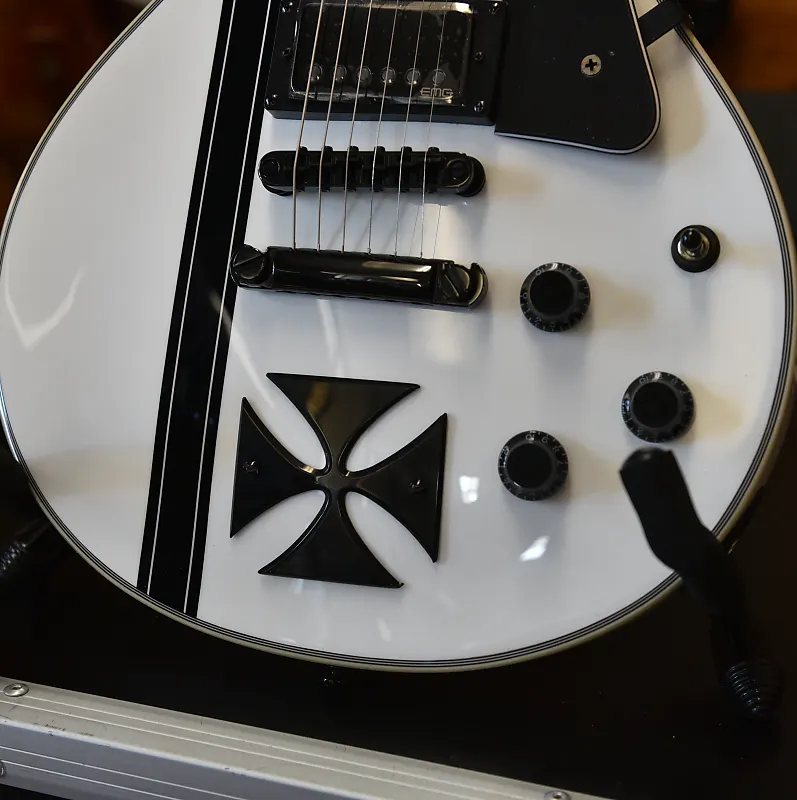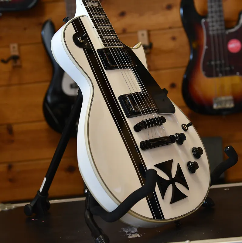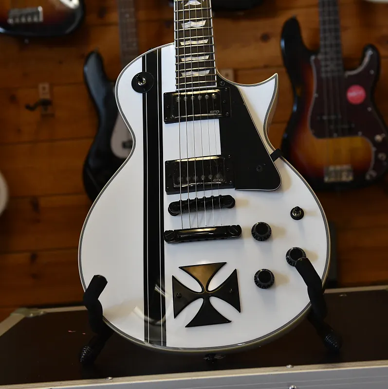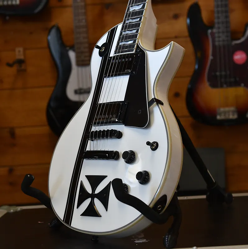 LTD Iron Cross - модель Signature Series Джеймса Хэтфилда, фронтмена группы Metallica и одного из самых уважаемых в мире ритм-гитаристов в любом жанре. Модель Iron Cross основана на индивидуальном дизайне инструмента Джеймса и имеет конструкцию грифа из красного дерева с кленовым колпачком, а также трехкомпонентный гриф из красного дерева с грифом из черного дерева и 22 экстра-джамбо-ладами с инкрустацией Iron Cross на 12-м ладу. LTD Iron Cross оснащен активными звукоснимателями EMG JH SET собственного производства Джеймса и включает в себя бридж TOM и струнодержатель с блокировкой TonePros. Доступен в отделке Белоснежка с черной полосой и железным крестообразным приспособлением.