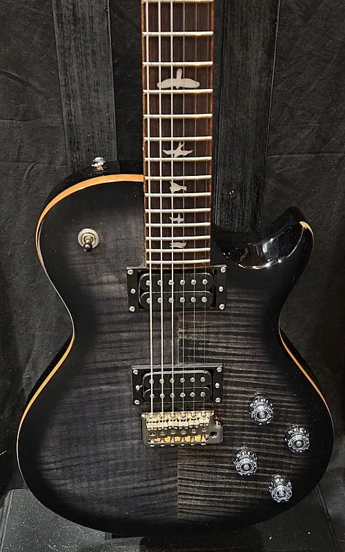 PRS SE Mark Tremonti Standard - это тяжелый твердотельный электрогитар с драйвовым звучанием и впечатляющим внешним видом. SE Mark Tremonti Standard оснащена резонирующим корпусом из махагони с удобной задней выемкой, а также эффектной верхней панелью из кленового флейма с выразительной виолончельной выемкой. Этот высокопроизводительный инструмент обладает эргономичной шейкой Wide Thin, быстроиграбельной грифовой накладкой из розового дерева с радиусом 10 дюймов и особым соединением грифа, обеспечивающим свободный доступ к верхним ладам. хамбакеры Tremonti "S" этой гитары созданы для агрессивной игры, а 4-кнопочная схема управления позволяет индивидуально регулировать громкость и тембр каждого звукоснимателя. SE Mark Tremonti Standard включает высококачественный запатентованный PRS тремоло-мост для стабильной игры с питч-эффектами, а также надежные тюнеры PRS. Кроме того, гитара имеет привлекательную натуральную окантовку и культовые накладки на гриф из белого перламутра Old School Birds. И в завершение, Paul Reed Smith SE Mark Tremonti Standard отличается прочное, блестящее покрытие, привлекающее свет и гарантированно привлекающее внимание.
