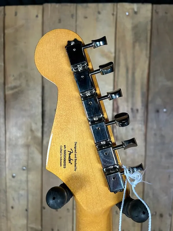 Классические детали 50-х: Включает маркировку головки грифа в стиле 1950-х и однослойный белый накладной пикгард, завершая винтажный образ Stratocaster.