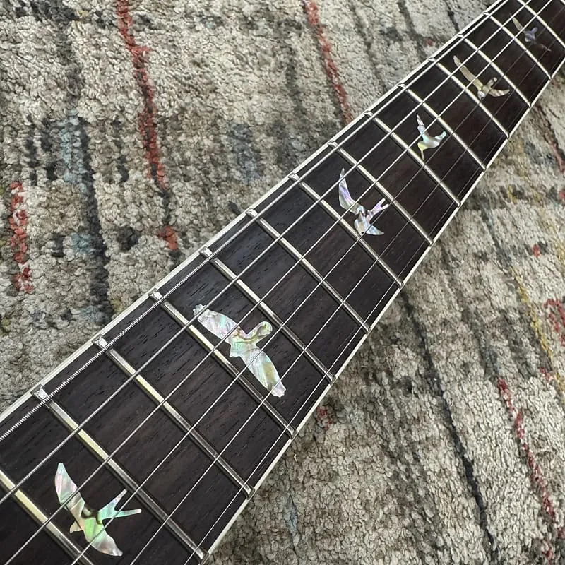 Гриф Pattern Vintage ощущается невероятно приятно в руке, а накладка на гриф из восточного индийского палисандра с фирменными инкрустациями в виде птиц PRS придает элегантный штрих. Звукосниматели McCarty III TCI от PRS обеспечивают теплое, четкое звучание с большим диапазоном, идеально подходящее как для чистых, душевных тонов, так и для насыщенных, поющих соло.