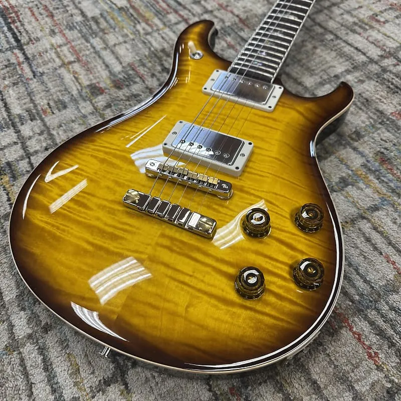 Продается в Metz Music совершенно новая PRS McCarty 594. Эта гитара является настоящим произведением искусства, созданным с легендарным мастерством PRS и вниманием к деталям. Отделанная в потрясающем цвете McCarty Tobacco Sunburst, эта гитара сочетает винтажную атмосферу с современным удобством игры. Роскошная верхняя дека из фигурного клена Flame Maple в сочетании с богатым корпусом и грифом из красного дерева обеспечивает как впечатляющую эстетику, так и насыщенный звук.