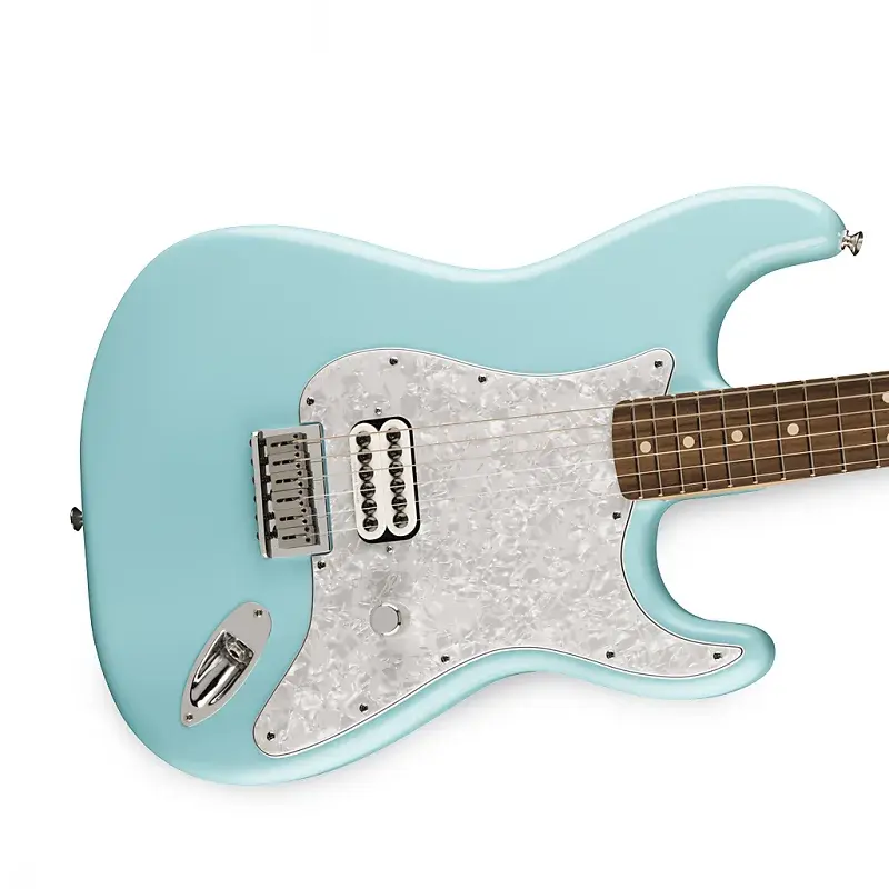 Stratocaster Tom DeLonge оснащен хамбакером Seymour Duncan Invader для мощного звучания и турбо-звука, идеально подходящего для тяжелых аккордов и рифов с хрустящей атаку. Но дело не только в мощности - продуманная система управления, состоящая из одного основного регулятора громкости в сочетании с цепью требл-менеджмента, сохраняет естественные верхние частоты гитары, обеспечивая чистое звонкое звучание и искрящиеся края перегруза. Удобная современная шейка "C" с толстым профилем имеет медиум-джамбо ладовые порожки на грифе радиусом 9.5'' с накладкой из палисандра для современного ощущения и превосходной играбельности. Другие особенности включают тюнеры в винтажном стиле и жесткий мост Stratocaster с блоками. седла для классического вида, превосходной интонации и улучшенной стабильности настройки. Индивидуально изготовленная накладка на гриф Том ДеЛонге украшена оригинальным произведением искусства ДеЛонге.