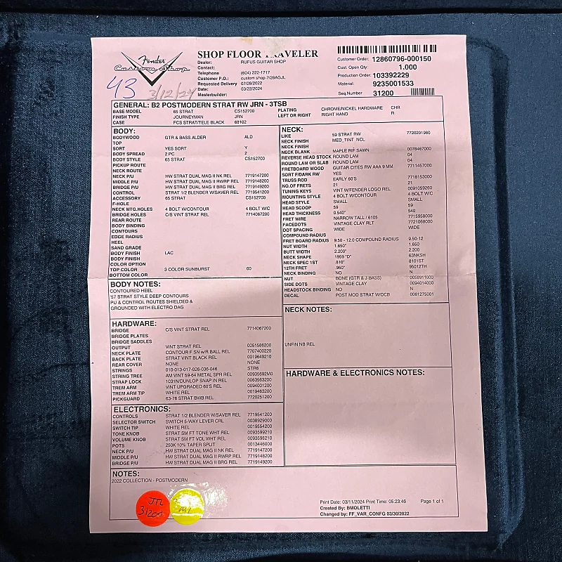• Мост: Custom Shop Vintage Strat Tremolo Relic