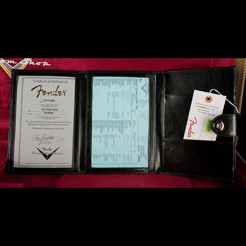 Другие особенности включают американский Vintage синхронизированный тремоло, тюнинговые механизмы в винтажном стиле, кость на грифе и однопластинчатую белую накладку. Также входит с соответствующим периоду специальным кейсом Custom Shop с твидовой обивкой, ремень и сертификат подлинности.