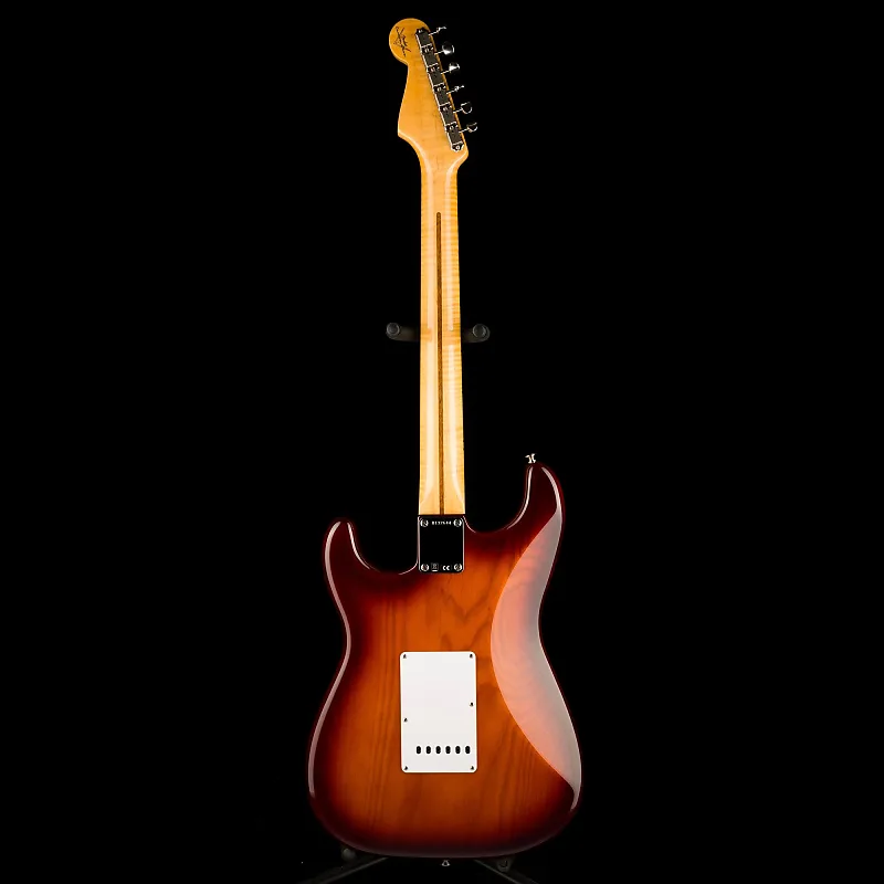 У нее двухчастное корпус из отобранного ясеня, который был тщательно выбран, чтобы быть легким, надежная шея из AAA клена с «пламя» и формой грифа «54 U», и вся правильная винтажная фурнитура. Мы выбрали радиус 9,5" и лады Narrow Tall (6105) для удобной игры и сгибов - это одно из самых популярных и распространенных изменений в гитарах в винтажном стиле из Custom Shop.