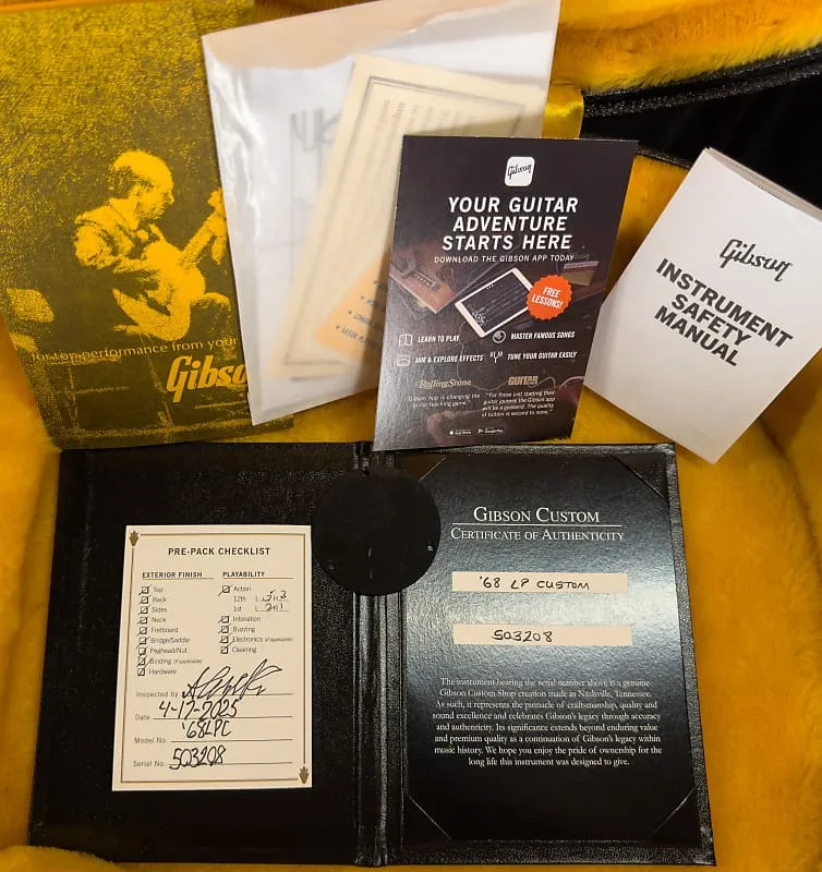 В комплекте: Аксессуары: Медальон переключателя Gibson Custom (с историческим черным пластиковым чехлом в футляре), буклет с сертификатом подлинности, ярлыки исторического переиздания