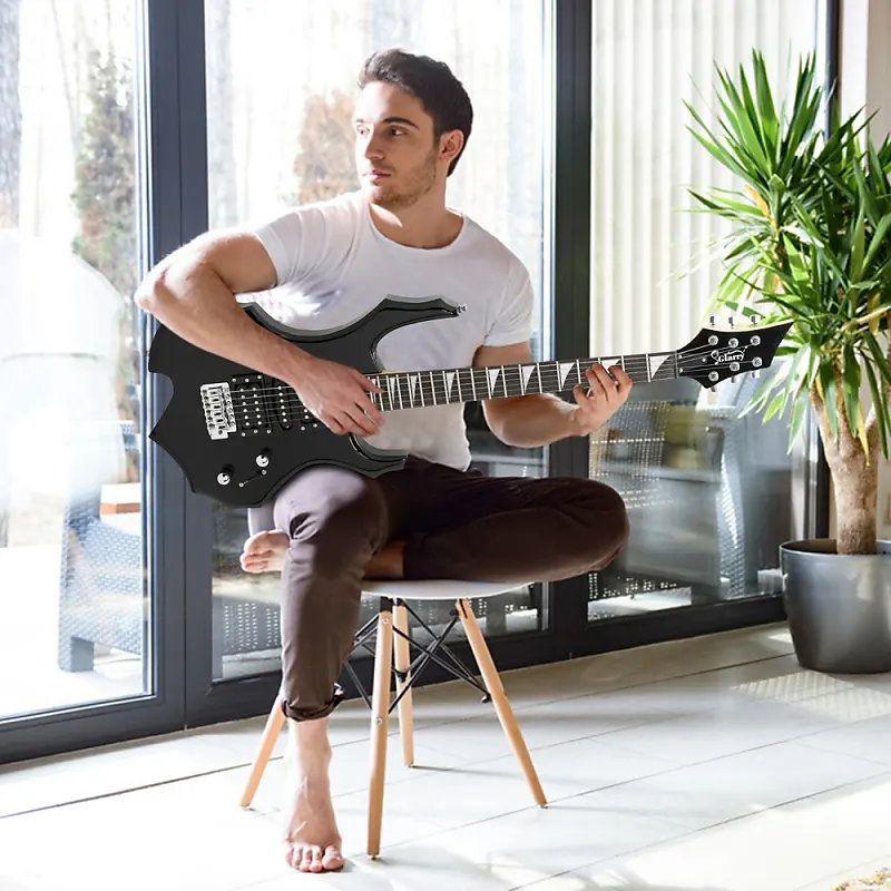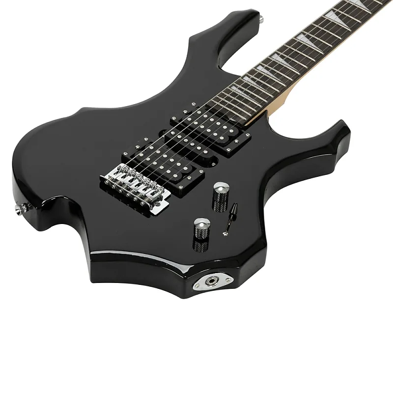 Уникальный дизайн электрогитары в форме пламени привлекает внимание и добавляет индивидуальность вашему исполнению. Узоры на корпусе с 24 ладовыми ладами также создают эффектный вид, выделяя вашу гитару среди других.