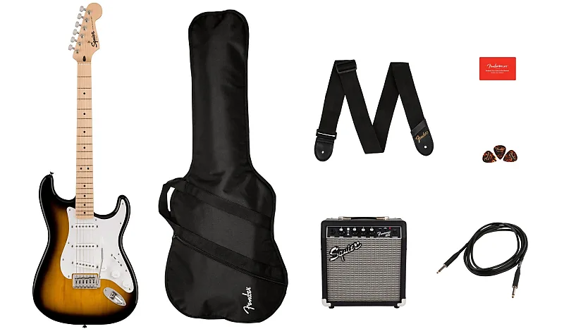 Набор Squier Sonic Stratocaster Pack - это комплект «все в одном» для начинающих гитаристов. Знаковая Stratocaster имеет стильное тело, удобную для игры шейку и универсальное звучание благодаря трем сингловым звукоснимателям и тремоло-бриджу. Компактный усилитель Squier Frontman 10G предлагает чистый и перегруженный каналы, управление тоном, разъем для наушников и AUX-вход.
