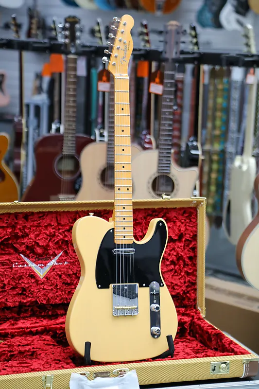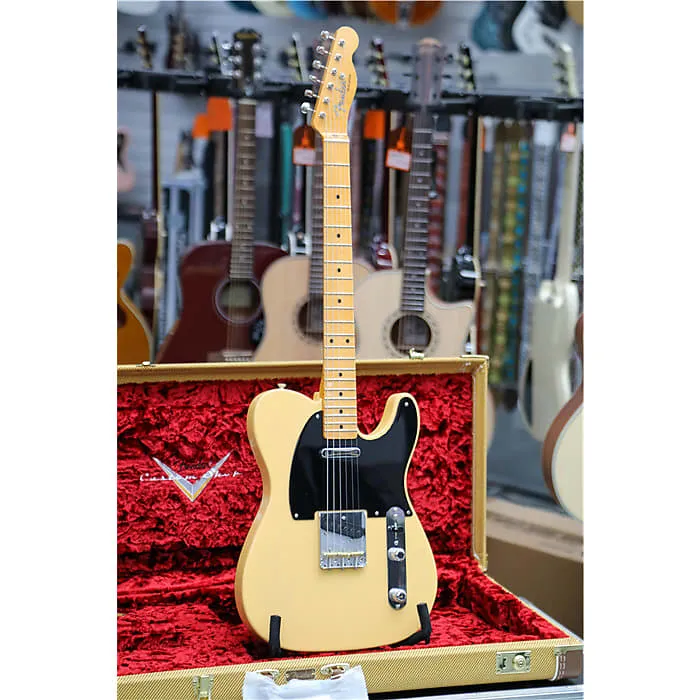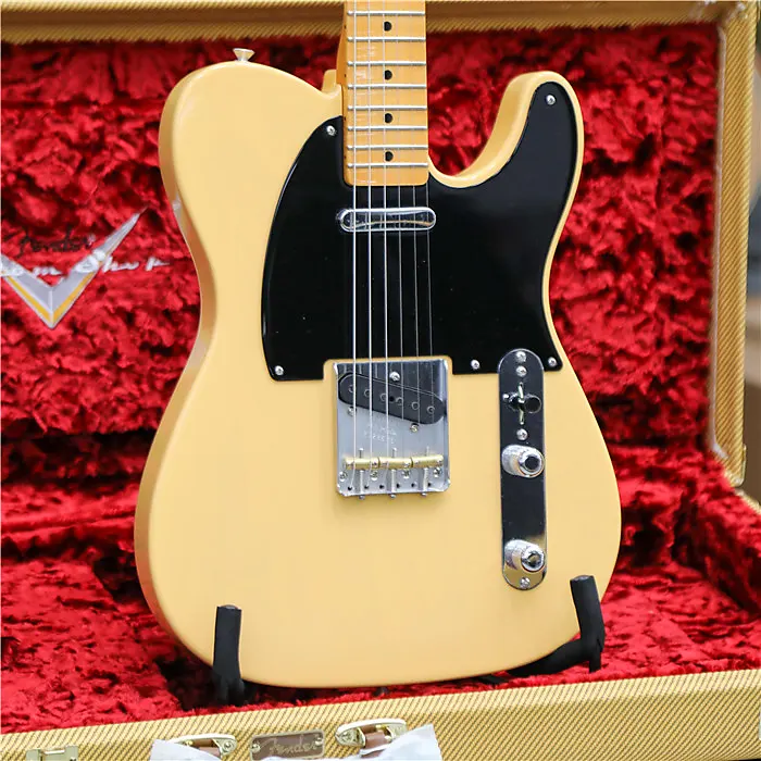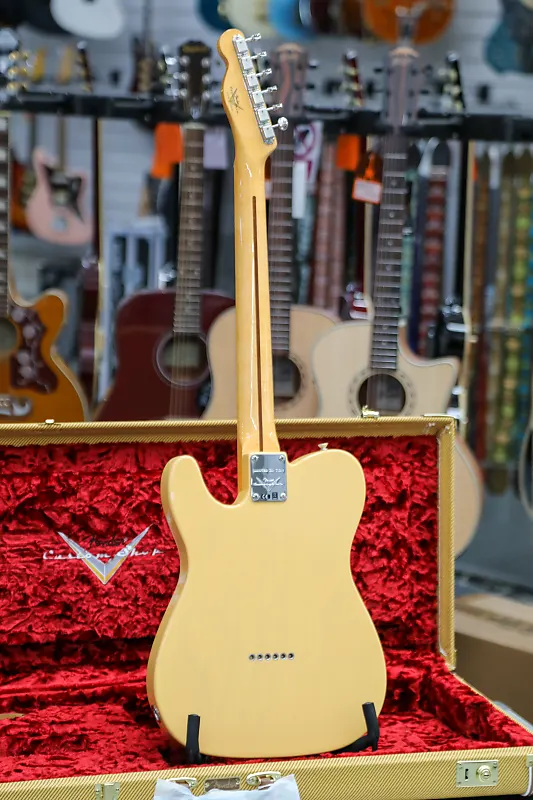 Custom Shop компании Fender отдает дань уважения Telecaster 50-х годов с помощью модели Time Capsule. Корпус, выполненный в классической форме производителя, сделан из отборного ясеня и покрыт выцветшим цветом, что придает ему особую привлекательность. Блондовый Nocaster отделан выцветшим цветом, что добавляет ему винтажного шарма. Гриф изготовлен из кленовой доски с радиальным распилом, выделен покрытием из нитроцеллюлозного лака и имеет форму U 1954 года для дополнительный комфорт. Чтобы защитить гитару, она также поставляется с люксовым кейсом. Раскройте вечное звучание Fender Custom Shop '53 Telecaster Time Capsule и создавайте музыкальную историю.