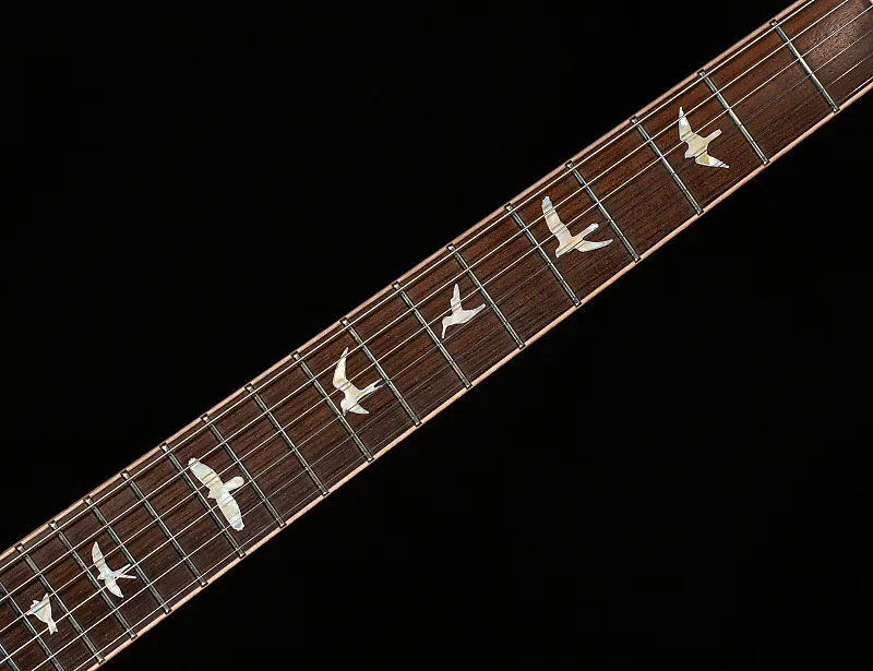 Инкрустация на грифе: Птицы из золотого перламутра с белыми контурами из перламутра