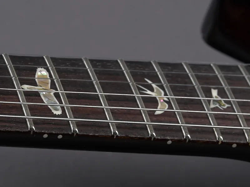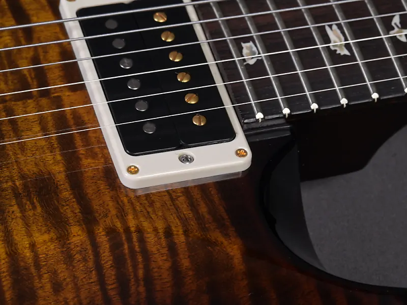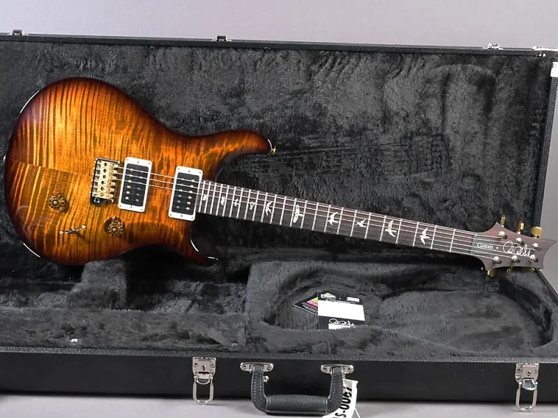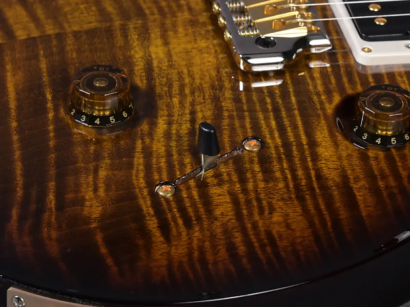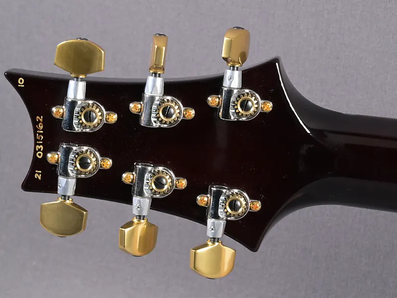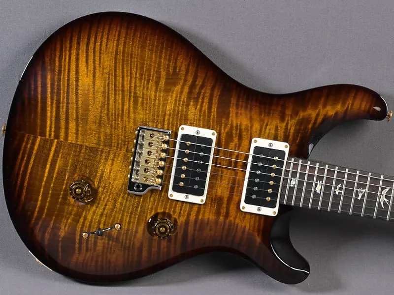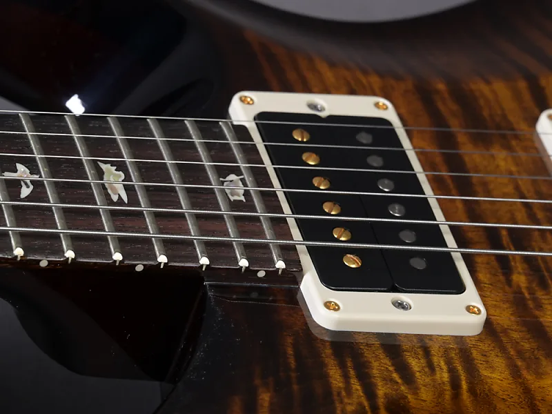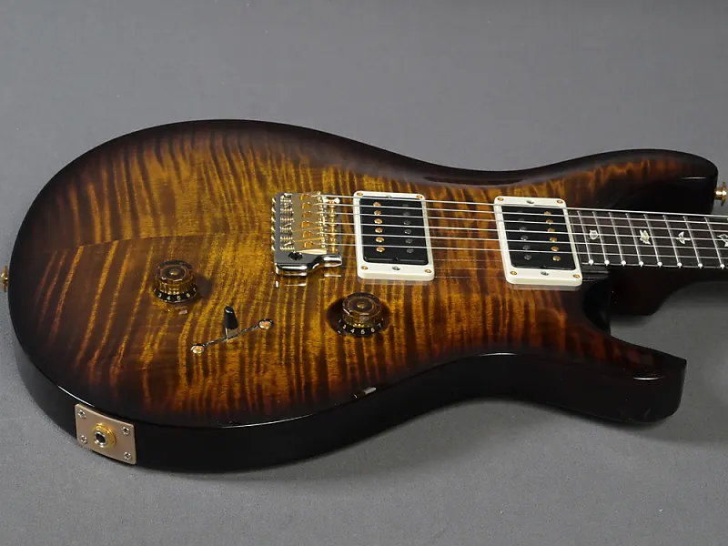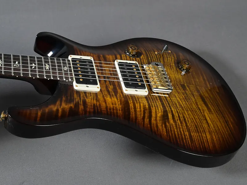 Здесь классическая Custom 24 в особенно привлекательной версии! Великолепная дека (top из 10 слоев) окрашена в Black Gold Burst, шея с "Regular Pattern" идеально ложится в руку, вес очень комфортный - 3320 граммов, а проверенные звукосниматели 85/15 в обеих позициях передают мощный Sustain и насыщенный основной звук идеально. Еще одной особенностью каждой USA Custom 24 является тремоло. Отличная управляемость, идеальная стабильность настройки и отсутствие снижения сустейна при использовании - один из компонентов этой идеальной гитары, который Пол сохраняет с первых прототипов и который фактически невозможно улучшить. Здесь в красивой гибридной (хром/золото) версии.