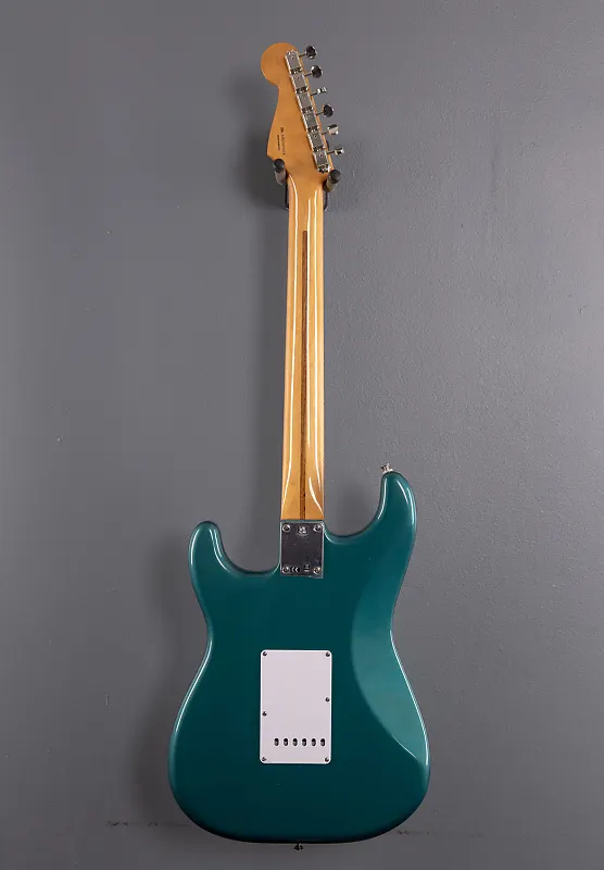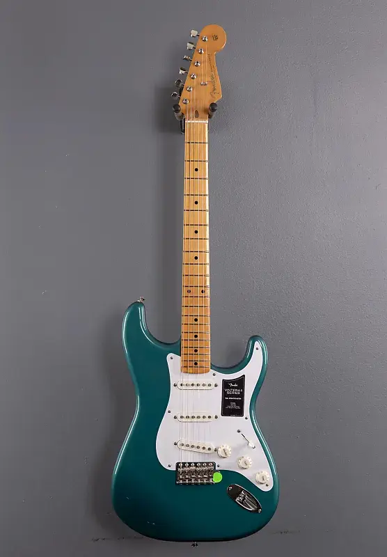 Цвет Ocean Turquoise, корпус из ольхи с глянцевым полиэфирным покрытием, радиус грифа 7,25", кленовый гриф с точечными инкрустациями и высокими винтажными ладовыми порожками на кленовой шее формы Mid '50s Soft "V", длина мензуры 25,5", ширина комплекта 1,650", звукосниматели Strat однотипные '50s Vintage с 5-позиционным переключателем, 6-седельный тремоло Vintage-Style с изогнутыми стальными седлами, тюнеры Fender Vintage-Style, вес 7,5 фунтов, комплектуется чехлом.