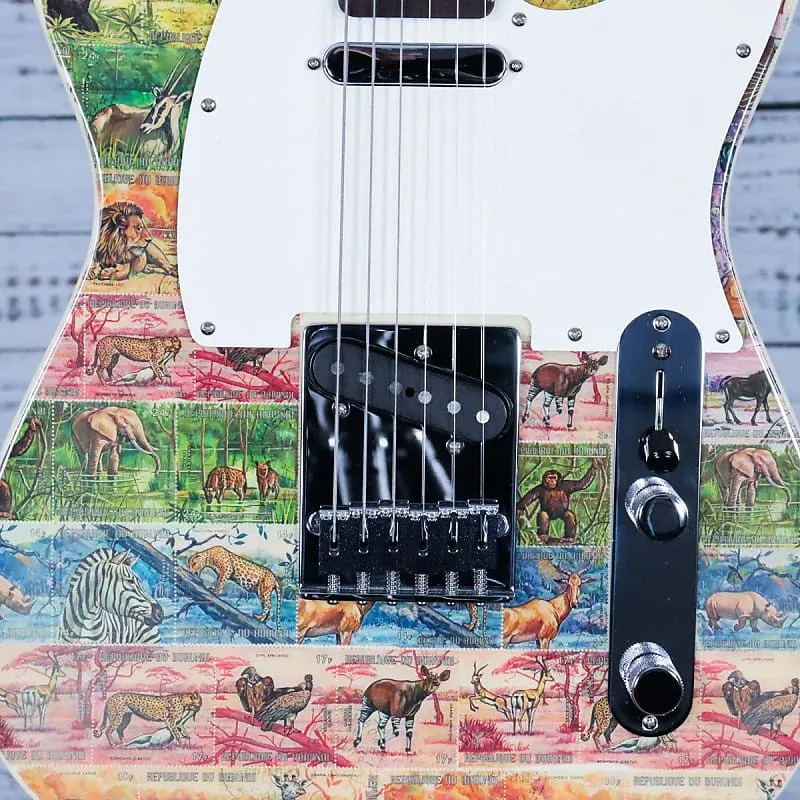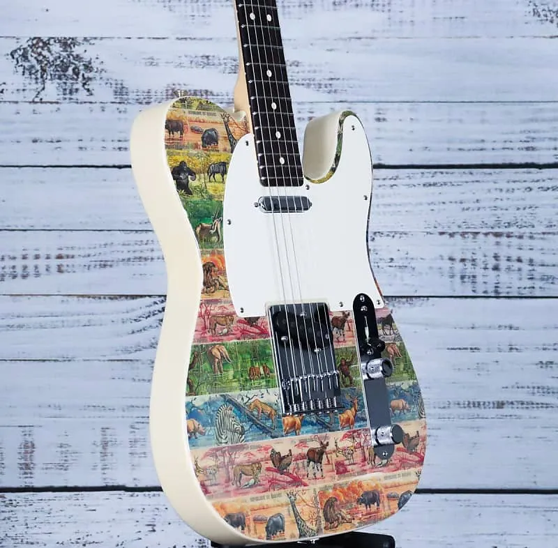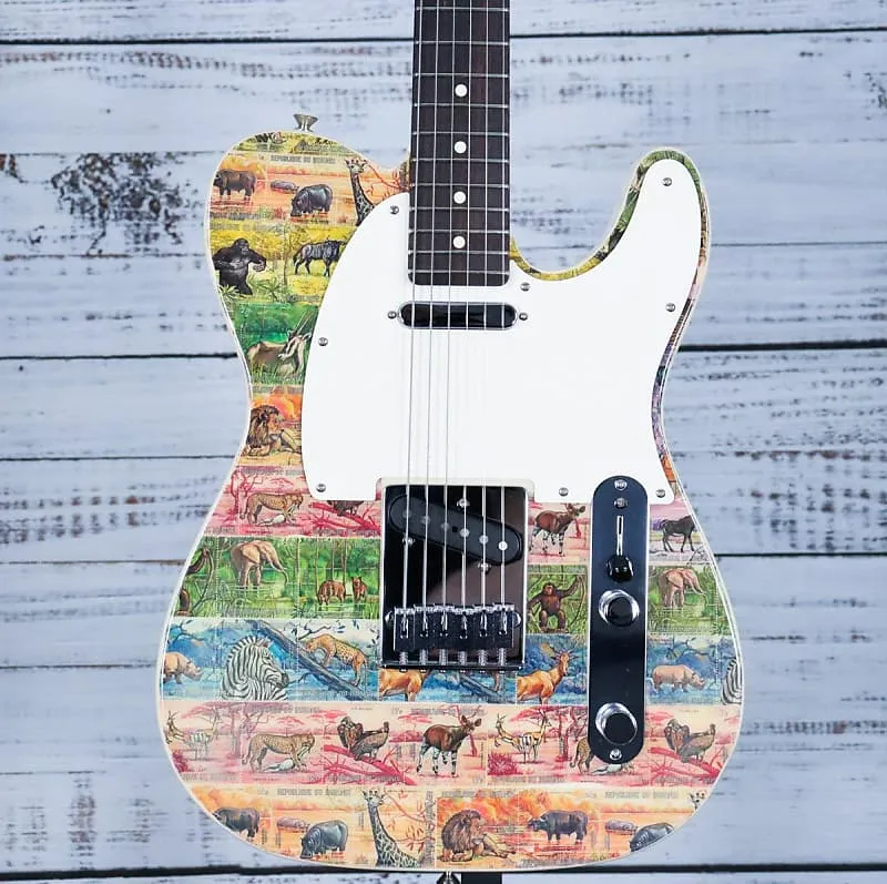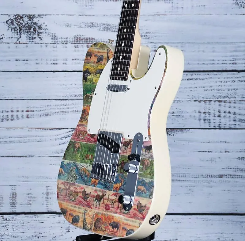 Мы иммигрировали в США в 1984 году. Я взял с собой всего две вещи - акустическую гитару от моего отца, конечно же Fender, и коллекцию марок, над которой мы работали вместе с ним. По прихоти я взял несколько моих британских марок и сделал из них гитару. Людям это понравилось настолько, что я продолжал выбирать марки из других стран, и чем больше стран я выбирал, тем больше интереса возрастало к коллекции, поэтому я решил, уже в некоторой степени шутливо, что сделаю гитару для каждой страны в мире. Я хотел работать над этим с моей дочерью, Роуз Муни, поэтому попросил ее разработать пластину на гриф, символизирующую мир. Я думал, что она выберет традиционную иконографию с голубем, но она выбрала очень простой графический рисунок цветка, который стал пластиной грифа на всех гитарах 195 стран. В среднем на одну гитару уходит 100 марок, так что всего в коллекции использовано около 20 000 марок. Все они - Telecaster’ы, одного цвета, с одинаковыми звукоснимателями, и все они функциональны по тону и пригодны для игры. Люди спрашивали меня: 'как ты хочешь назвать... «Коллекция?» И лучшее название, которое я смог придумать - IMAGINE COLLECTION, просто основываясь на мечте Джона Леннона. Я был бы рад, если через 25 лет все, кто владеет одной из этих гитар, собирались вместе, жали друг другу руки. Не воевали бы друг с другом. Это была бы мечта, ставшая реальностью.»