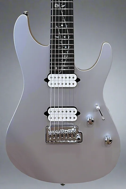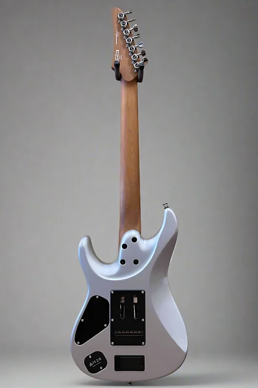 Классический серебристый, корпус из американского липы, гриф AZ7 овальной C-образной формы из жареного клена, накладка из черного дерева с радиусом 12" и инкрустацией «Дерево Смерти», джамбо-ладовые стальные лады, мензура 25,5", ширина верхнего порожка 1 7/8", активные звукосниматели Fishman Fluence серии Tim Henson 7 humbucking для бриджа и грифа, 5-позиционный переключатель с основным регулятором громкости и тоном с push/pull функцией Fishman Fluence, тремоло Gotoh T1527S и блокирующие механики Gotoh MG-T, вес 8,3 фунта, в комплекте с чехлом