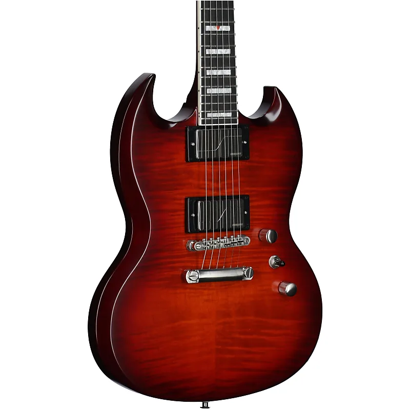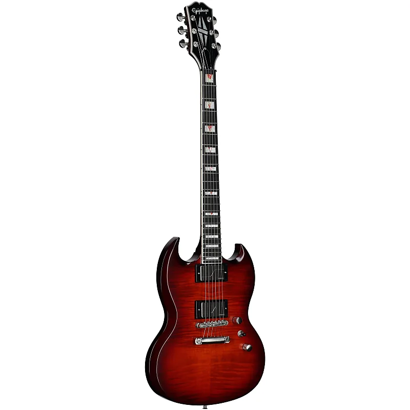 Эпифон Пропечси SG предлагает высокопроизводительные функции, сохраняя классический дизайн SG, что делает его отличным выбором для современных прогрессивных гитаристов. Корпус из красного дерева оснащен верхней накладкой из клена толщиной 1/2" и красивой шпонированной накладкой AAA клена, а также тонкой отделкой Aged Vintage Gloss. Асимметричная шея SlimTaper из красного дерева оснащена грифом из черного дерева с 24 ладами и джамбо ладами, инкрустацией из перлолоида/перламутра в виде блоков и треугольников, при этом перламутр подобран в тон корпуса, колками Grover Locking Rotomatic с покрытием из сатинированного никеля и черным порожком Graph Tech NuBone.
