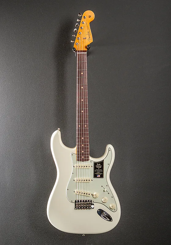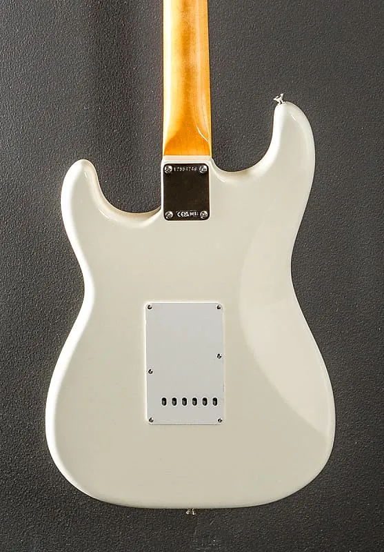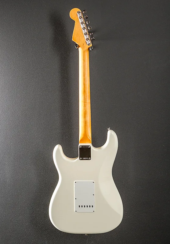 Olympic White, глянцевое покрытие нитроцеллюлозным лаком, корпус из ольхи, C-образный гриф 1961 года из клена с радиусом 7,25 дюйма из палисандра и винтажными высокими ладами, длина мензуры 25,5 дюйма, ширина порожка 1,650 дюйма, звукосниматели Pure Vintage '61 с одной катушкой, 5-позиционное переключение с общей громкостью, тон 1. (нековые/средние звукосниматели) и тембр 2. Управление (звукосниматель в бридже), синхронизированное с Pure Vintage тремоло с изогнутыми стальными седлами, тюнеры Pure Vintage single line Fender deluxe, 7,8 фунтов, с жестким футляром