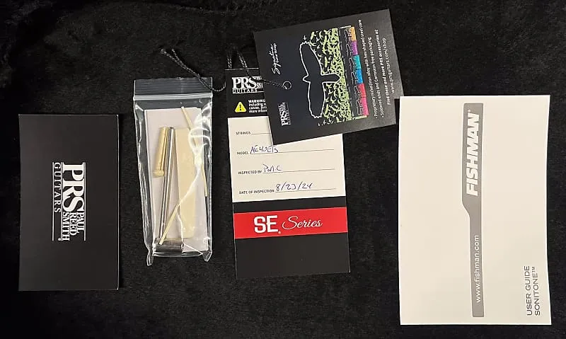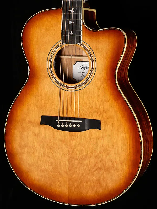 Другие высококачественные характеристики включают цельную еловую деку, гриф и подставку из эбена, кость для порожка и седла, а также фирменные инкрустации PRS в виде птиц и дизайн головки грифа. Поставляется в высококачественном жестком футляре.