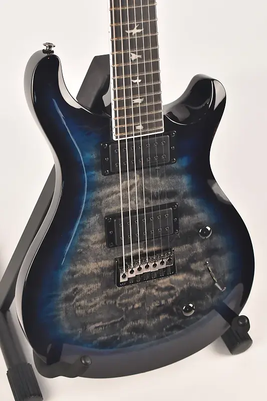 Оснащенная черной фурнитурой, регулятором тона с функцией coil-tap и 3-позиционным переключателем, она предлагает разнообразные звуковые опции. Кленовый шпон с рисунком «квилтед мейпл» и мост через струны для 7 струн завершают этот мастерски разработанный инструмент.