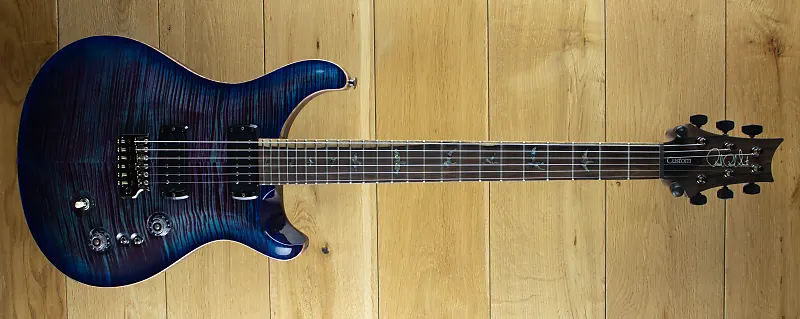 PRS Wood Library Custom 2408, цвет Violet Blueburst с звукоснимателями TCI, гриф из кокомболо, накладка с инкрустацией Old School Birds и фурнитура Smoked Black.