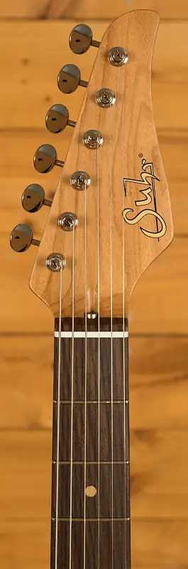 Гриф из обжаренной клена покрыт масляной отделкой для гладкого и легкого ощущения. С профилем 60's C Vintage Standard - 0,81" на первом ладу и 0,93" на двенадцатом, 22 закругленных средних лада и радиусом грифовой доски из индийского палисандра 9"-12" - это массивная, но при этом по-настоящему удобная гитара.