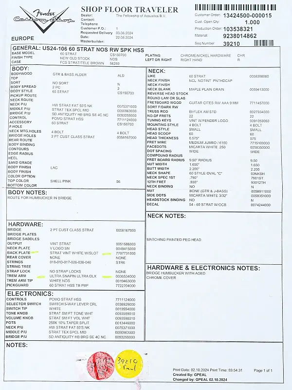 Кленовый гриф выполнен в стиле 60-х с овальной формой. Профиль C и гриф из палисандра с радиусом 9,5 дюймов. Качество соответствует тому, чего вы ожидаете от Custom Shop; этот Stratocaster соответствует строгим требованиям современных гитаристов!