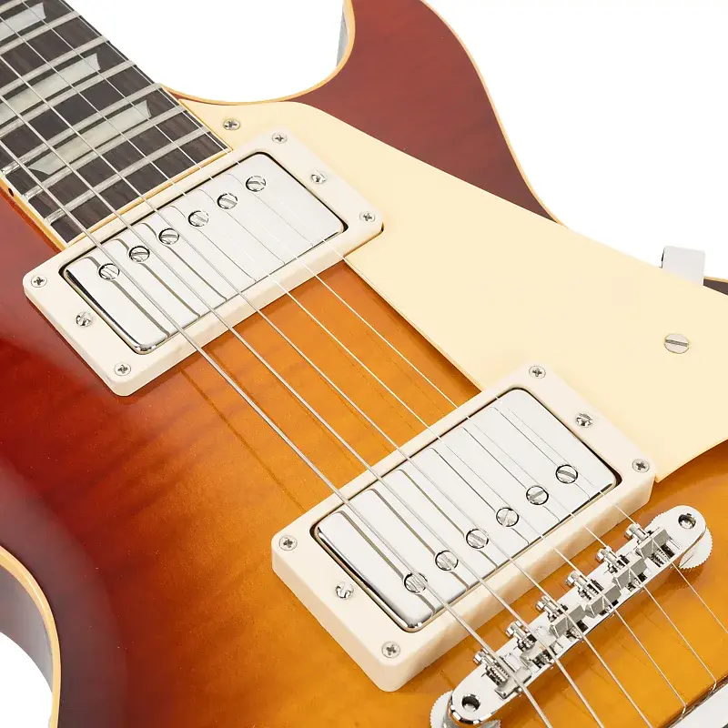 Сделанная с прекрасно фигурной верхней декой из клена AAA и цельным корпусом из красного дерева, эта Les Paul дарит полный, резонансный звук, который невозможно спутать с чем-либо иным. Ручные катушки CustomBucker Alnico 3 - сердце ее тона; без покрытия для максимальной чувствительности, они дают богатую ясность, певучее сустейн и живую среднюю часть, которая определяла рок и блюз на протяжении десятилетий. Исторические детали, такие как соединение грифа с длинным шипом, легкая алюминиевая задняя планка и мост ABR-1, обеспечивают не только тон, но и истинное олдскульное звучание и ощущение, будь то запись треков в студии или выступление на сцене.