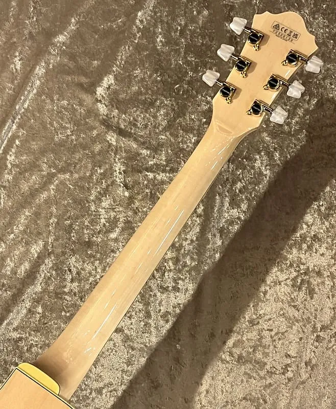 Небольшой верх из ели шириной 14 3/4 дюйма, кленовый боковой и задний корпус, а также кленовый гриф из 3 частей находятся в идеальном состоянии,