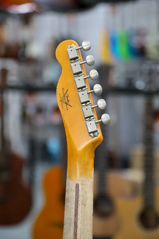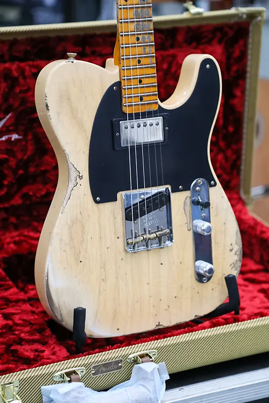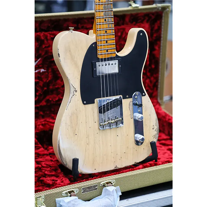 Отделка Heavy Relic с лаком; корпус из отборного ясеня из 2 частей с перекрестным швом; гриф из цельного клена с плоской распилкой с формой спинки 1950 Blackguard; радиус грифa Vintage Compound от 7.25" до 9.5"; 21 узкий высокий лад (6105); кастомные вручную намотанные звукосниматели '50-'51 Blackguard (мост) и Seymour Duncan Seth Lover SH-55 (гриф); проводка Dual Stack HS для Tele; 3-позиционный переключатель; однопластинчатая черная феноловая накладка; мост Reverse Nocaster с компенсированными латунными седлами RSD; колки в винтажном стиле; кость у порожка; дисковый держатель струн; чехол жесткого типа Deluxe; ремень; сертификат подлинности.