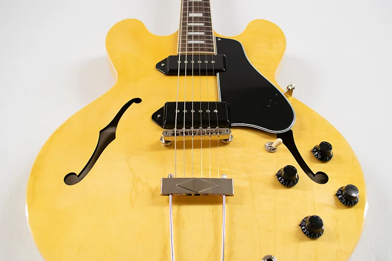 Рычание, лай и укус - почти каждое описание могучего звукоснимателя P-90 начинается с одного из этих характеристик, связанных с собаками, и двойные звукосниматели Dogear P-90 на ES-330 полностью оправдывают эту грозную репутацию. Эти звукосниматели передают золотой голос винтажного P-90 с выраженной серединой, округлыми низами и звонкими высокими. В сочетании с великолепным звуком полностью полого корпуса этой гитары, Dogear P-90 от Gibson обеспечивают насыщенное чистое тепло, идеально подходящее для блюза, джаза и рок-гитаристов, ищущих более сложное звучание по сравнению с обычными полупустотелыми или цельными корпусами.