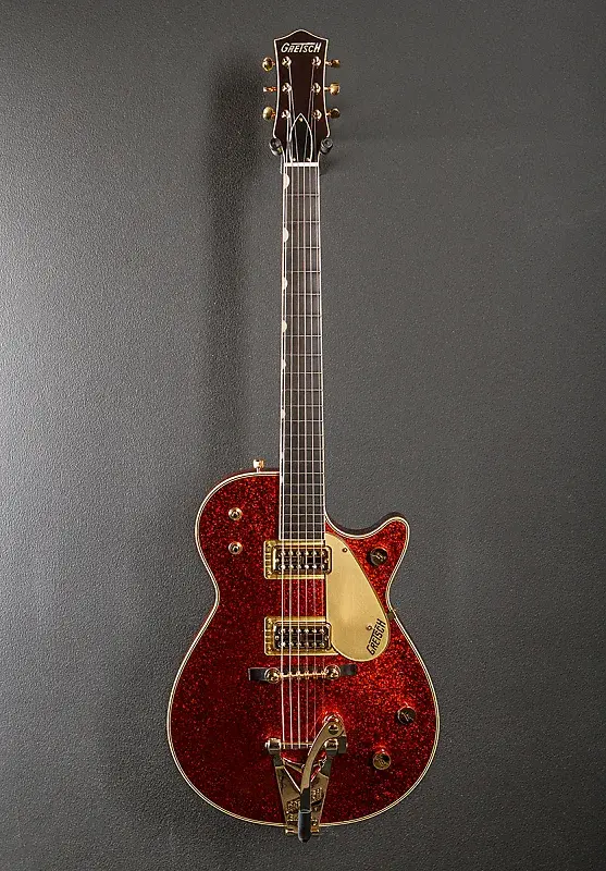 «Вдохновленные ключевыми и плодотворными годами золотого периода Gretsch 1950-х и начала 1960-х годов, гитары серии Vintage Select Edition созданы для музыкантов, ценящих лучшее в наследии музыкальных инструментов. Ограниченная серия G6129T-59VS Red Sparkle Jet сверкающе отдает дань этому великому наследию. Sparkle Jet - это гламурная и проверенная временем версия модели Gretsch Duo Jet, с узнаваемой мощью и энергией, исходящей от корпуса из полой махагониевой конструкции, которая усиливает гармоническое богатство за счет резонанса воздуха между верхом и корпусом, обеспечивая более живой и выразительный звук. Звукосниматели Filter’Tron впервые появились на модели Jet в 1959 году, а двойные звукосниматели TV Jones Ray Butts Ful-Fidelity на этой сверкающей лимитированной модели точно воспроизводят тот винтажный звук Filter’Tron».