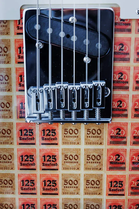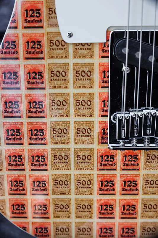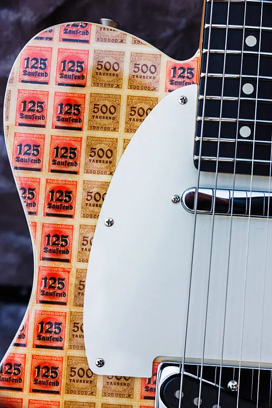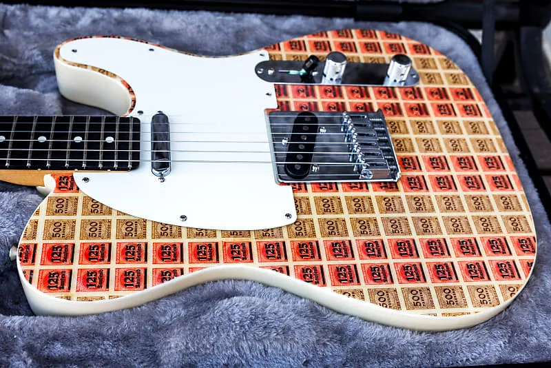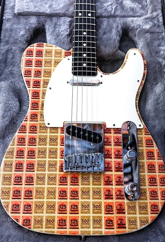 Fender Limited Edition Stamp Telecaster - Германия. Эта серия состоит из ограниченной партии коллекционных гитар, вдохновленных генеральным директором Fender, Энди Муни. Гитара, представленная здесь, представляет Германию. На грифе стоит подпись господина Муни, и гитара поставляется с сертификатом подлинности.