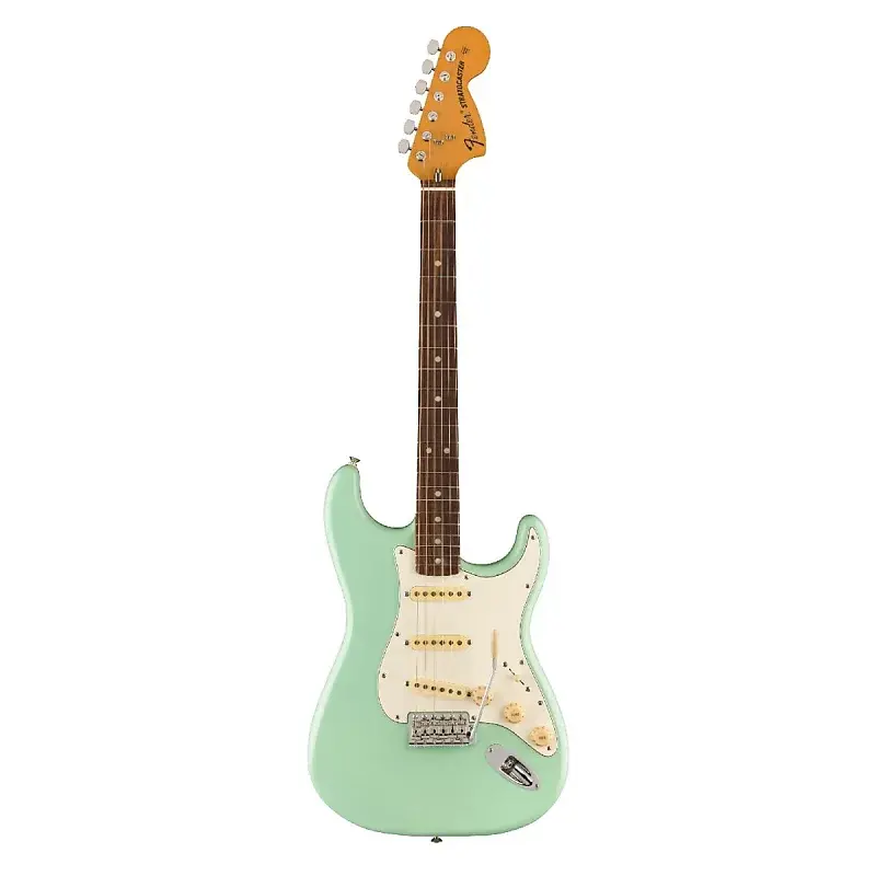 Гитара Vintera II '70s Stratocaster оснащена корпусом из ольхи и грифом из клена с накладкой из клена или палисандра для классического звука Fender, который отличается звонкостью и чистотой. Гриф формы "U" основан на классическом профиле 70-х годов и обеспечивает необычайно комфортное ощущение, а накладка с радиусом 7,25" и высокими ладовыми порожками в винтажном стиле дарит удобство игры в старом стиле, оставляя достаточно пространства для больших бендов и выразительного вибрато. Под капотом вы найдете троицу звукоснимателей в винтажном стиле 70-х, которые обеспечивают весь теплый, древесный, сладкий и сверкающий тон, сделавший Fender знаменитым. Винтажный синхронизированный тремоло-эффект позволяет полностью погружаться в игру, а механики винтажного стиля с маркировкой "F" придают классический вид, обеспечивая более тонкое передаточное отношение и улучшенную стабильность настройки, завершая комплект.